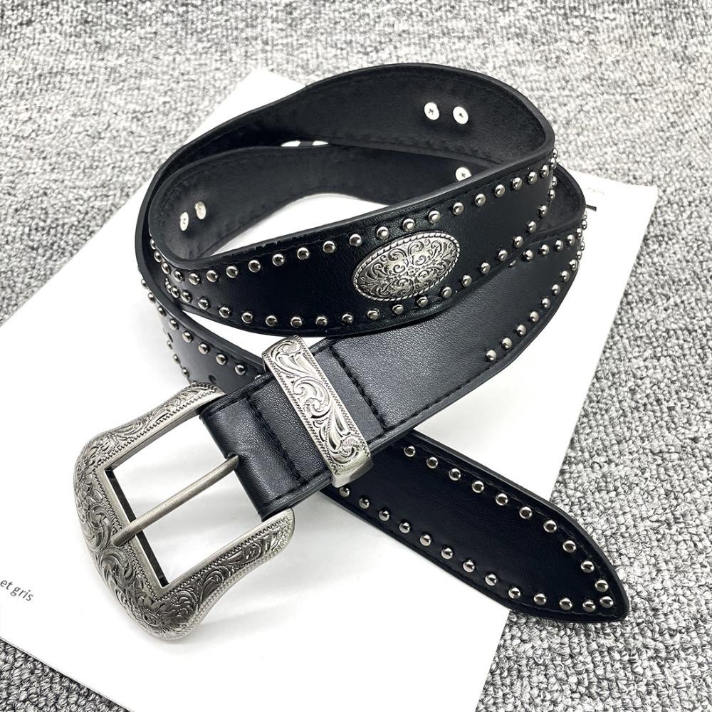 Cool Black Rivet Belt Wide Coffee Y2K Belt Fashion PU Vintage Waistband Women