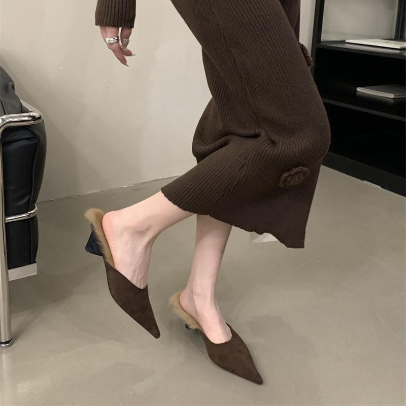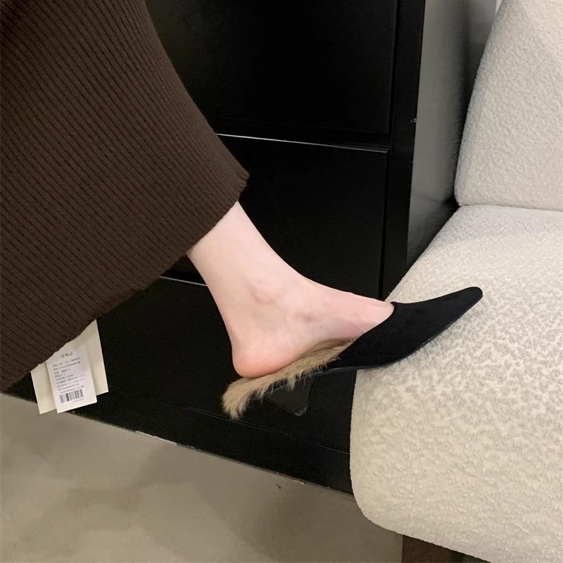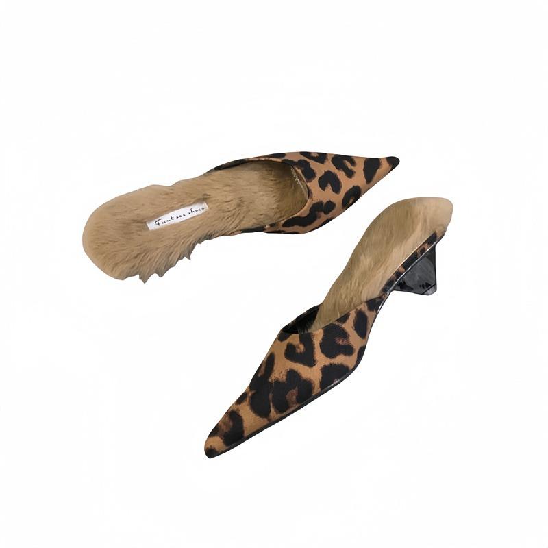 Осенние нежные бархатные туфли-полусапожки с закрытым носком и толстым каблуком, женская обувь с леопардовым принтом, шлепанцы на один педаль большого размера, пушистые шлепанцы