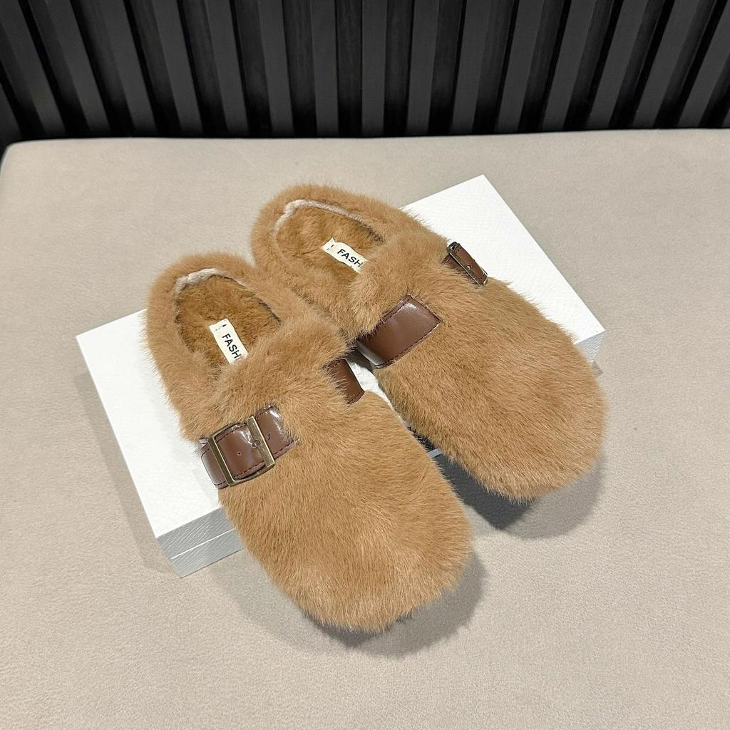 Тапочки Mao Mao женские новые осенне-зимние на одной педали высококлассные плюшевые хлопковые тапочки