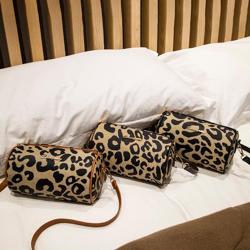 Сумка-цилиндр с леопардовым принтом, женская принтованная сумка через плечо