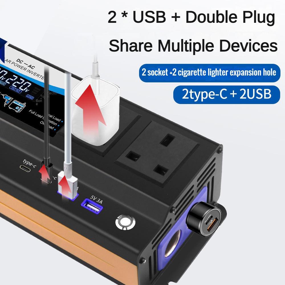 3000 Вт/4000 Вт/6000 Вт Портативный автомобильный инвертор со светодиодным дисплеем Высокомощный преобразователь напряжения Бытовой зарядный преобразователь со светом
