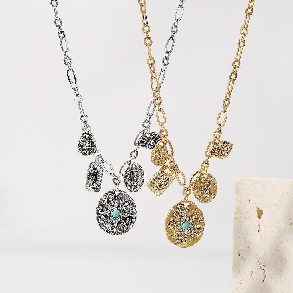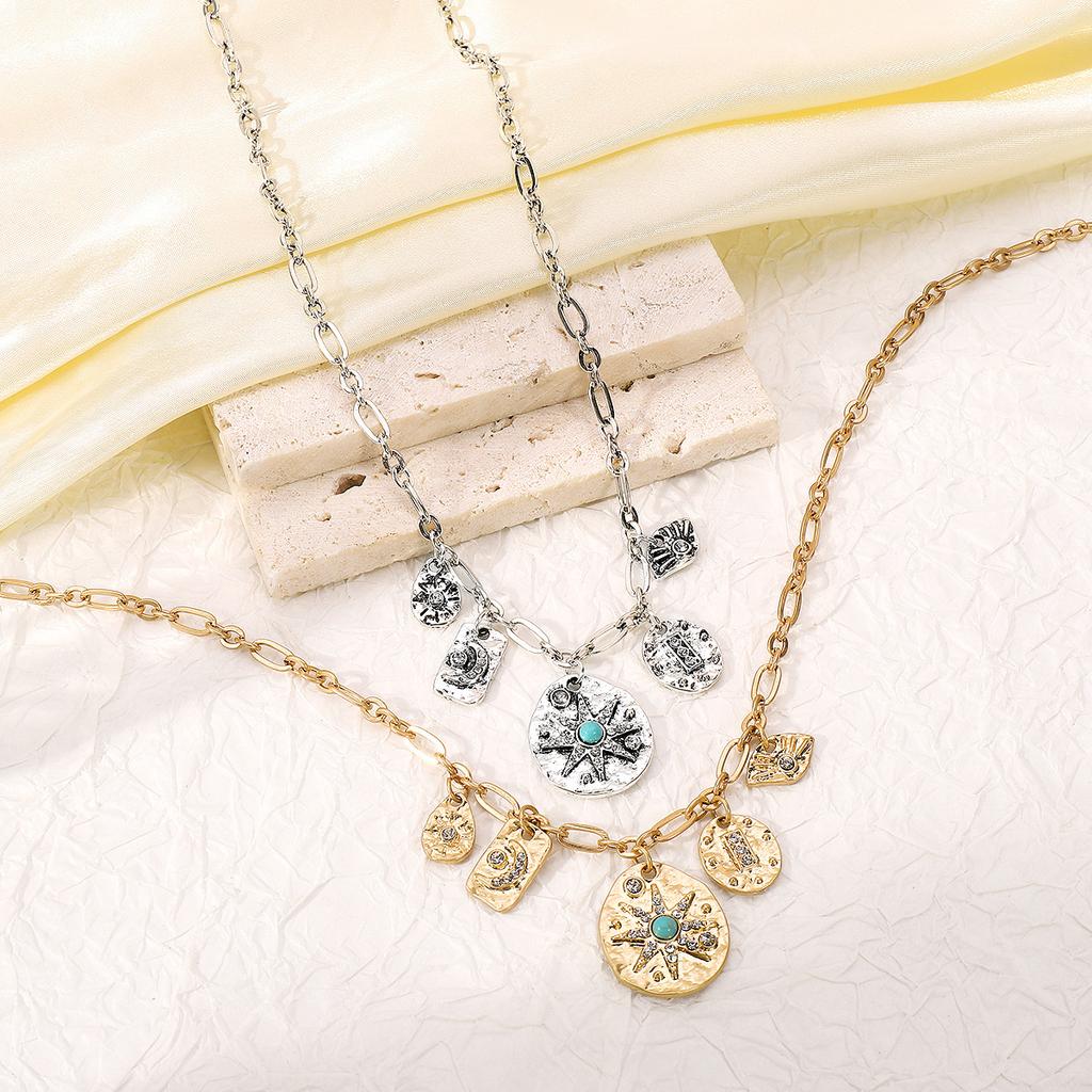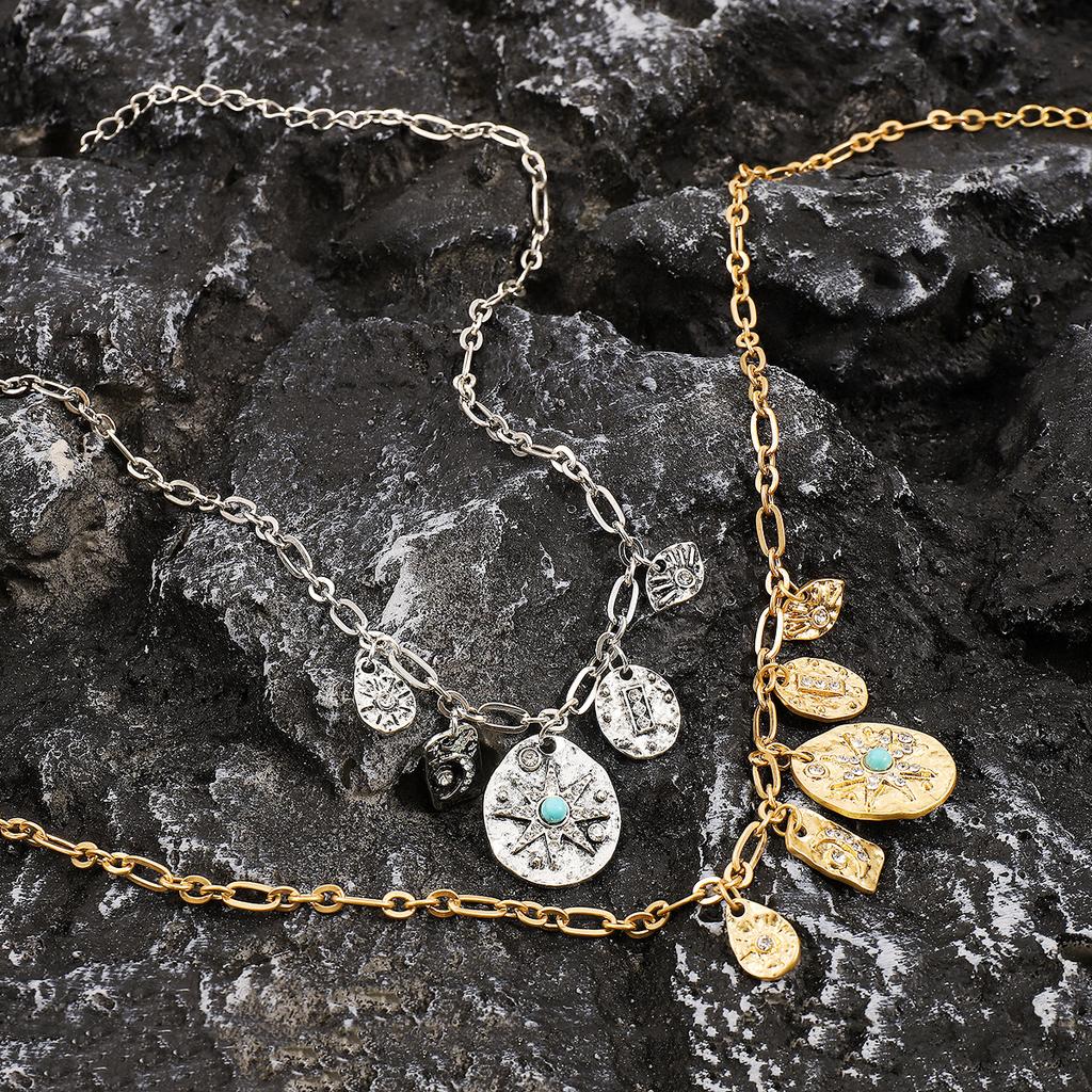 Tooxika Бирюзовая Звезда и Луна Многослойное Подвесное Ожерелье Модный Крутой Хип-Хоп Панк Стиль Круглый Элемент Винтажное Ожерелье