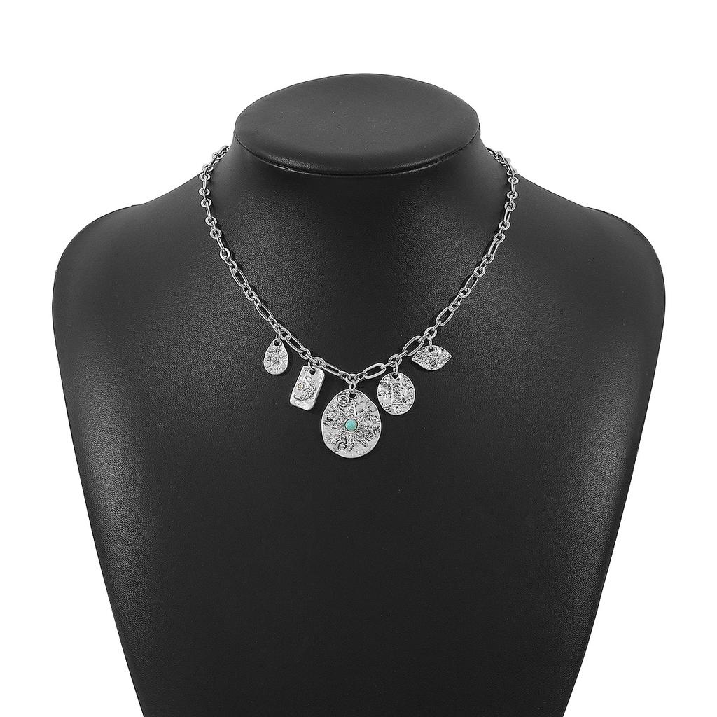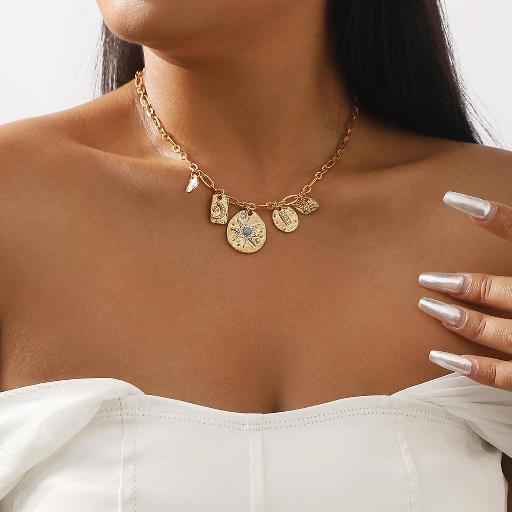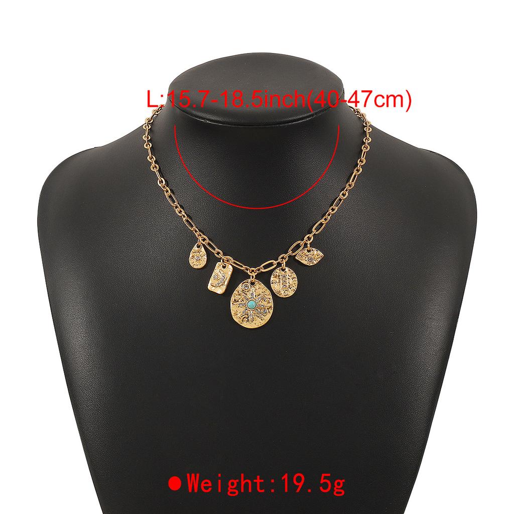 Tooxika Бирюзовая Звезда и Луна Многослойное Подвесное Ожерелье Модный Крутой Хип-Хоп Панк Стиль Круглый Элемент Винтажное Ожерелье