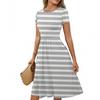 Женское повседневное модное платье миди А-силуэта с круглым вырезом, плиссированными короткими рукавами и ретро-цветочным принтом