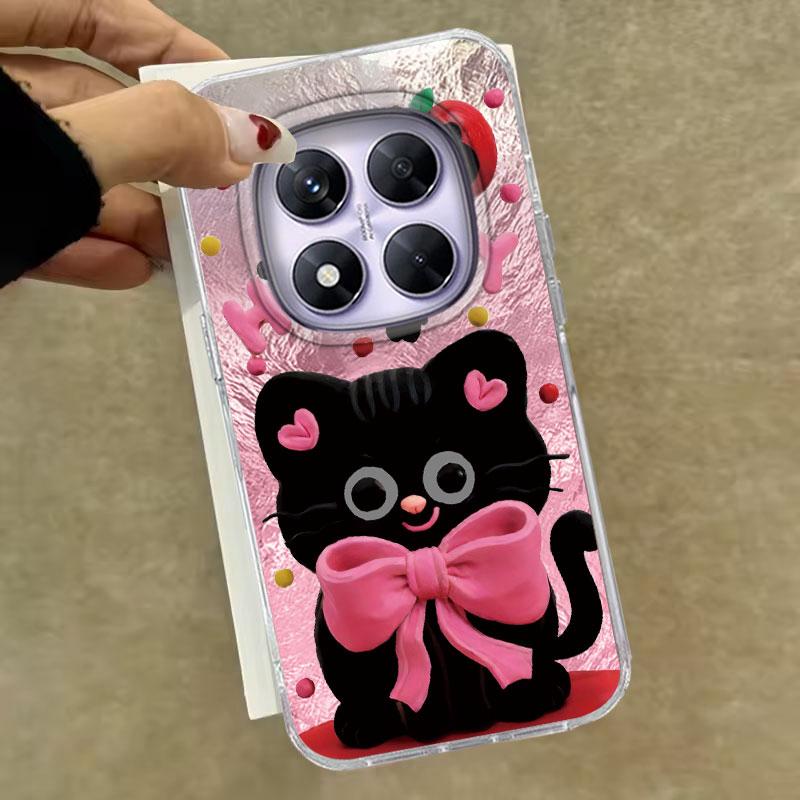 Чехол для Redmi Note 14 Pro Plus 13 Pro 14S 14C 13C A3 Xiaomi 14T 13T Pro 5G Чехол для телефона Розовый Мультяшный Буква Кошка Для Redmi A5 Сумка