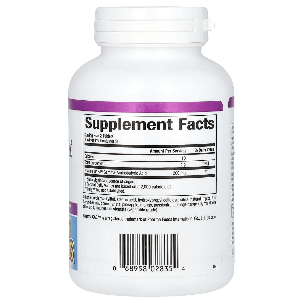 Product Description: Supplement Fast acting Relaxes and enhances mental focus Guaranteed purity and potency Suitable for vegetarians/vegans Pharma GABA is a superior natural formulation of the important brain compound gamma-aminobutyric acid (GABA). Clinical studies have shown that Pharma GABA can increase brain alpha wave production, which can help maintain mental focus while providing a feeling of relaxation in the body. Delicious tropical fruit flavored chewable tablets. Isura™: Non-GMO: Documented Mass Spec: Quality tested