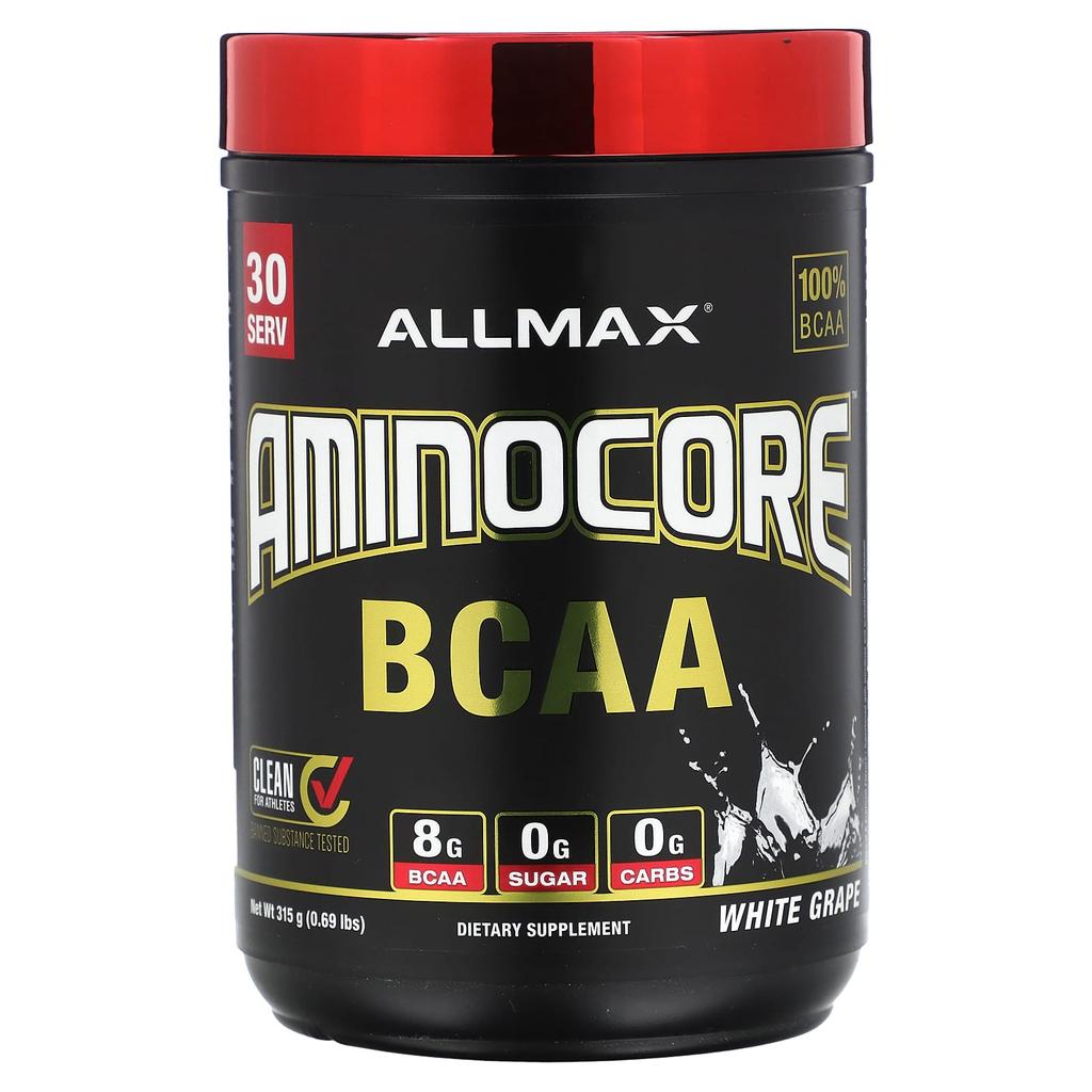 Product Description: 100% BCAA Pure ingredients for athletes No banned ingredients 8g BCAAs 0g Sugar 0g Carbs Supplement Natural and artificial flavors Sweetened with sucralose and acesulfame potassium Informed Choice - Trusted by Sport Certified Regularly tested for banned ingredients cGMP registered facility Quality tested every batch Soy free Gluten free tested Unique muscle builder Why choose Branched Chain Amino Acids (BCAAs) Supplementation is important for athletes looking to build muscle. BCAAs are the building blocks of muscle, reducing muscle breakdown and promoting fat loss. Unlike other amino acids, the BCAA amino acids leucine, valine and isoleucine are not produced by the body and must be taken through food or supplementation. Why choose Allmax AMINOCORE Different BCAAs are of different quality. AMINOCORE delivers 8.18g of BCAAs in a 9:6:5 ratio that has been clinically tested to increase muscle building signal activation by 350%. A source of pure, free-form BCAAs, AMINOCORE contains no bulking agents or non-BCAA amino acids. AMINOCORE’s 9:6:5 BCAA is 100% pure, excluding flavoring. Common 2:1:1 sources can contain impurities that can cause cloudiness, oily foam, sedimentation, and a particularly bitter taste. AMINOCORE is the cleanest, purest, and best-tasting BCAA supplement on the market. Supports a smart diet. AMINOCORE provides your muscles with the nutrients they need during diet and exercise, dramatically reducing muscle loss. Additional B vitamins boost metabolism and increase energy levels. The science of muscle building. AMINOCORE’s 9:6:5 BCAA ratio has been clinically studied to increase muscle building signal activation. Multiple studies have shown that mTor-p70S6K directly activates extreme muscle growth, and supplementing with BCAAs increases mTor-p70S6K cell signaling, which is responsible for muscle growth. As a result, you can build and maintain more lean muscle mass and maintain a higher metabolism. ‡‡A study found that taking 8,180 mg of BCAAs in a 9:6:5 ratio, along with high-intensity resistance training, increased signaling within muscle cells, leading to a 350% increase in protein synthesis (growth). This study was conducted at the Nobel Prize-winning Karolinska Institute in Stockholm, Sweden.