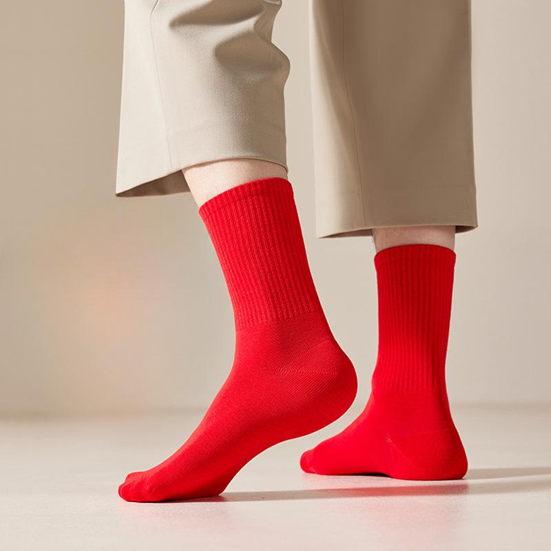 Мужские весенне-осенние однотонные антибактериальные дезодорирующие влагопоглощающие потные красные носки