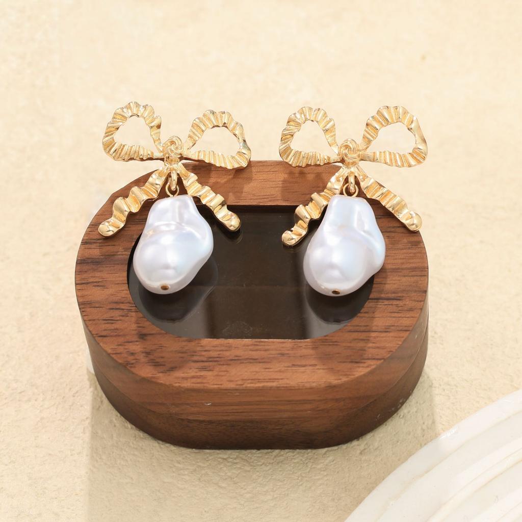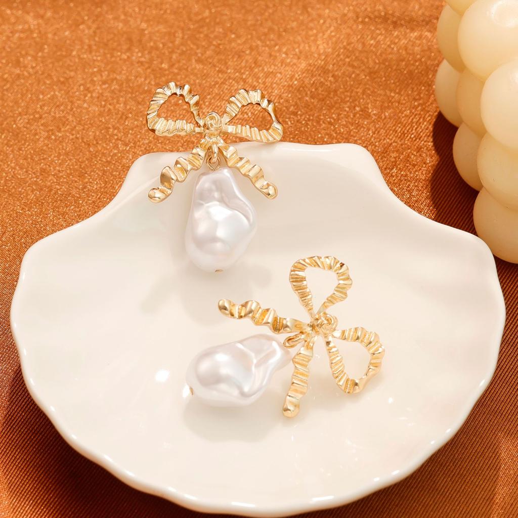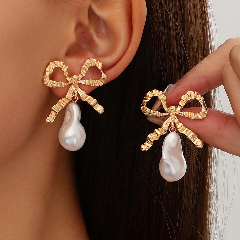 Модные серьги в стиле барокко с металлическим бантом, особой формы, с подвеской с бахромой из искусственного жемчуга, женский подарок