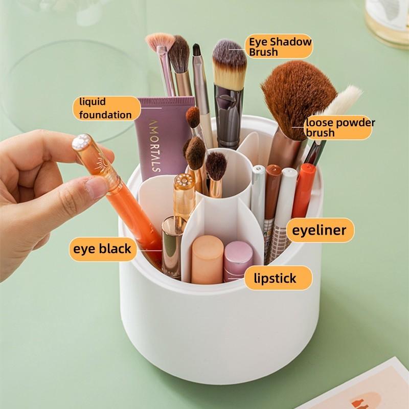 Вращающийся пыленепроницаемый контейнер для хранения большой вместимости, органайзер для кистей для макияжа, карандашей для бровей, губной помады, настольный ящик для хранения