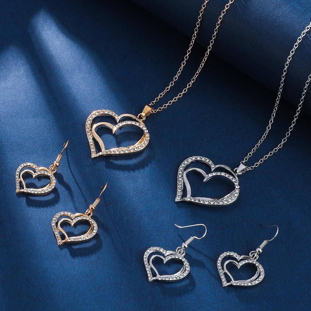 Женское ожерелье Набор украшений 'Любовь' Ретро Мода Индивидуальность Сплав Бриллиант Полый кулон в форме сердца Серьги