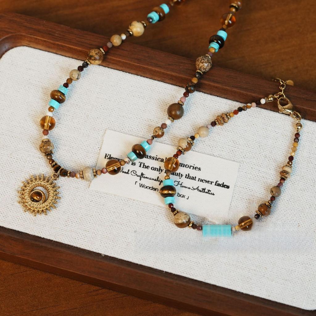 Ожерелье с подвеской в виде солнца из титановой стали и натурального камня, ретро, нишевое, цепочка до ключицы, модное, с высоким чувством стиля, универсальное, женское