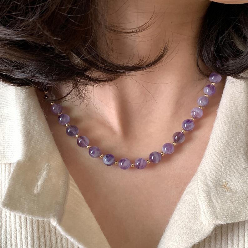 Натуральный аметистовый ожерелье из бусин женское в национальном стиле простое с высоким чувством класса цепочка на ключицу модные легкие роскошные темпераментные универсальные украшения