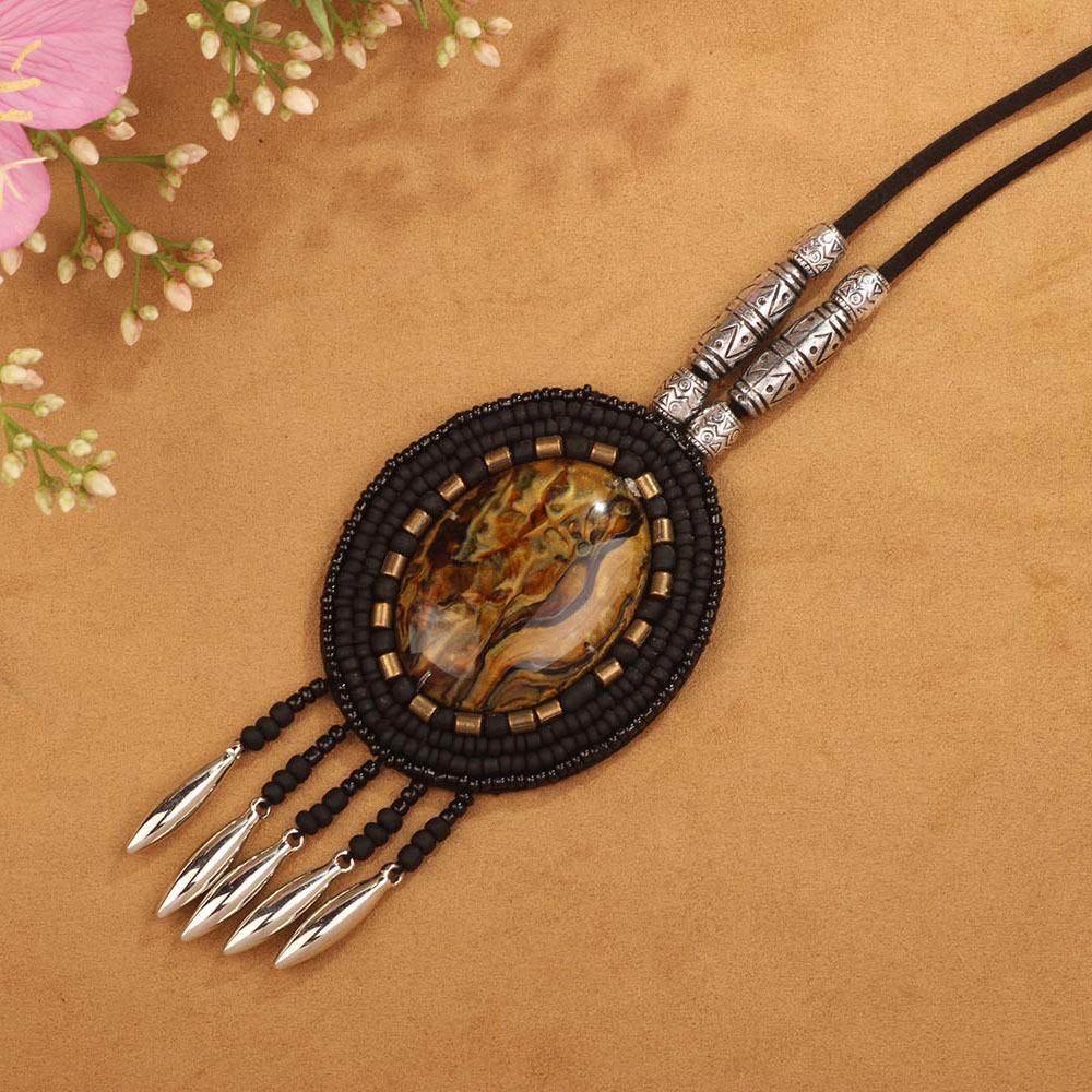 Богемское этническое ретро ожерелье, цепочка для свитера, подвеска с кисточкой, европейские и американские яркие и модные аксессуары