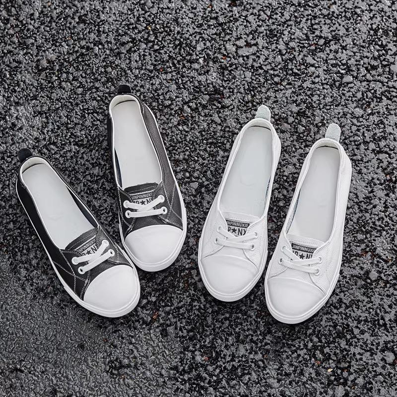 Кожаные маленькие белые туфли женские весенне-летние новые дышащие с мелким вырезом женские одинарные туфли универсальные женские кеды тренд