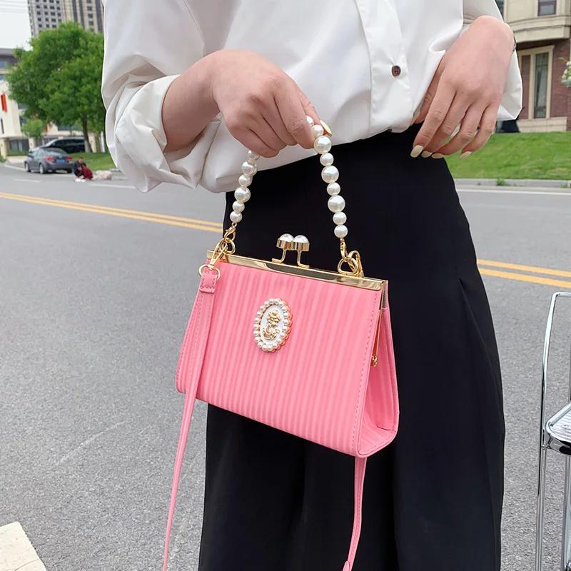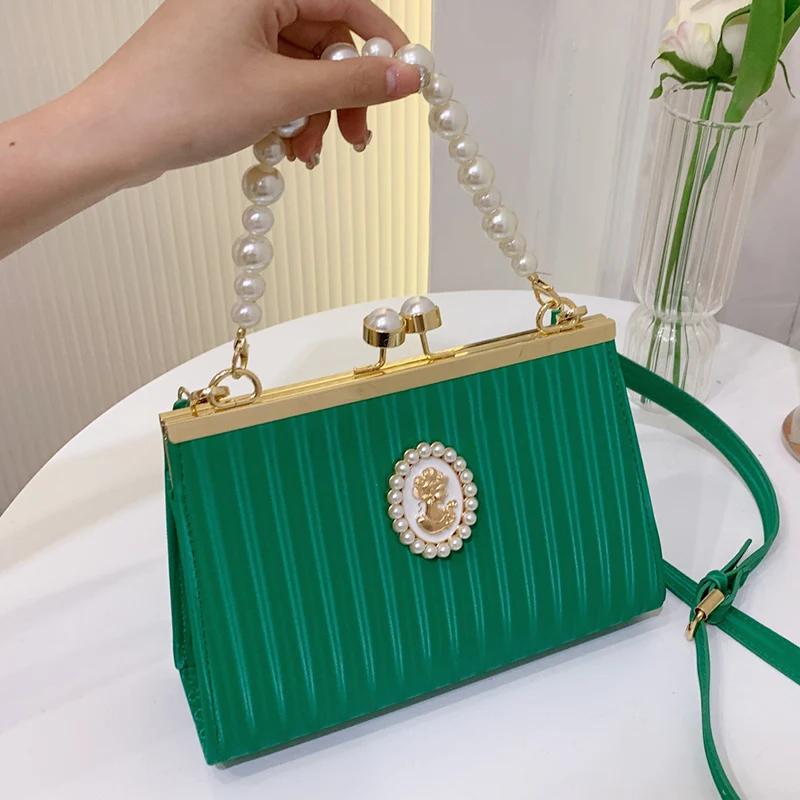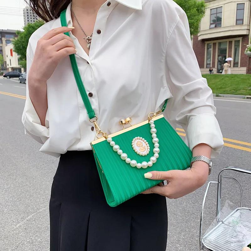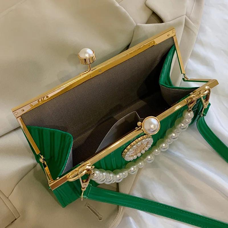 Роскошная сумка через плечо с жемчужной ракушкой и зажимом для женщин, зеленая, розовая, цепочка, сумки-мессенджеры, дизайнерская, белая, выпускная, свадебная, свадебная, клатч