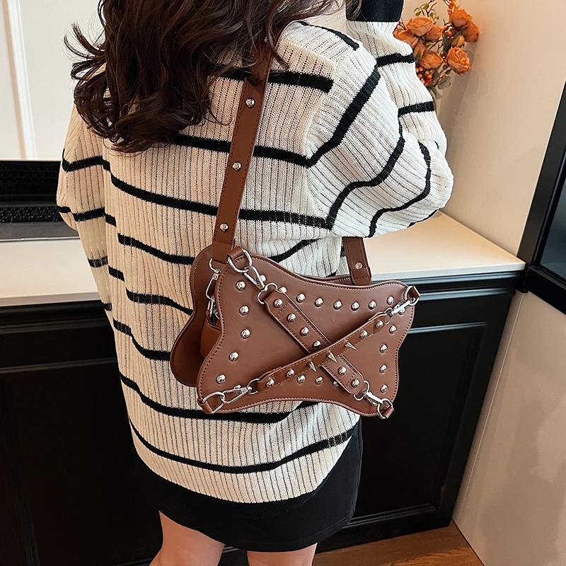 Сумка с крестообразными заклепками для женщин, сумка через плечо из искусственной кожи, однотонная пряжка, изысканные модные сумки через плечо