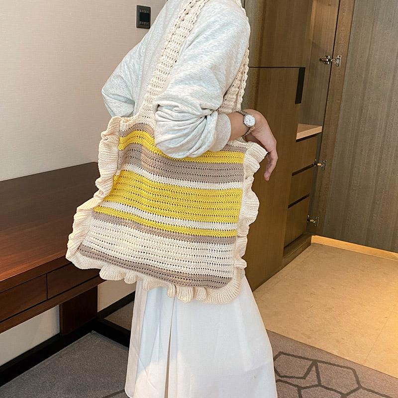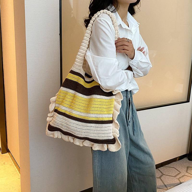 Вязаная женская сумка через плечо, новый стиль, большая вместимость, дизайнерские повседневные сумки для путешествий, повседневного использования, осенняя мода
