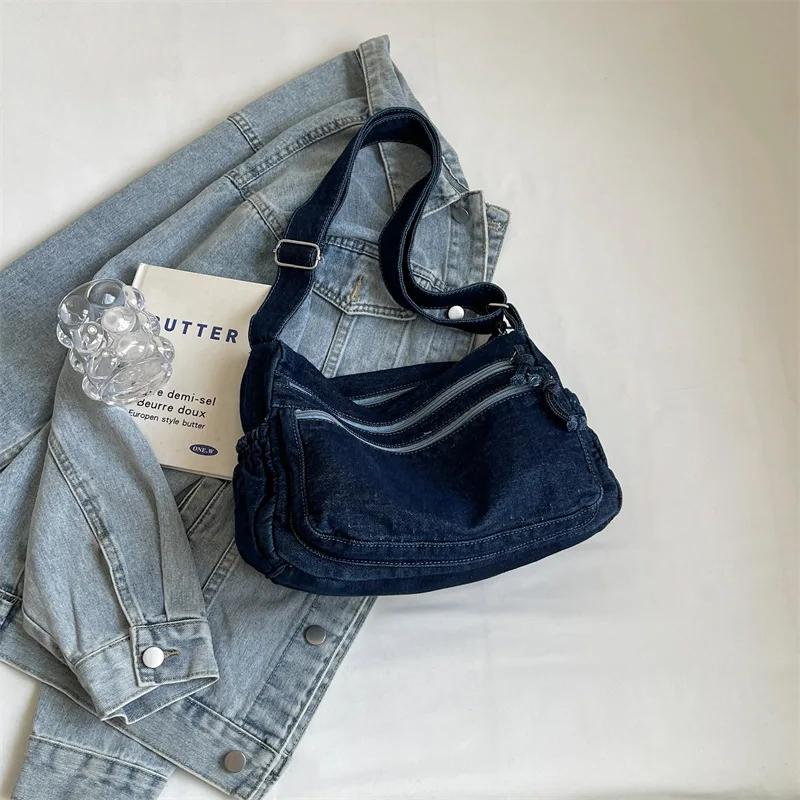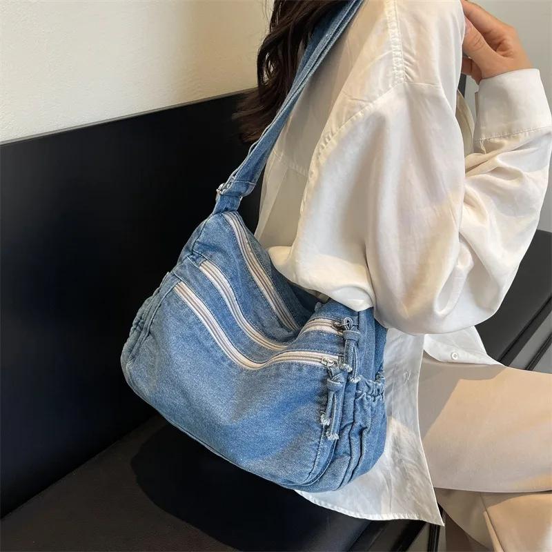 Джинсовая сумка для женщин, сумки-тоут, большая сумка на плечо, регулируемый ремень, элегантная сумка для покупок через плечо, модная