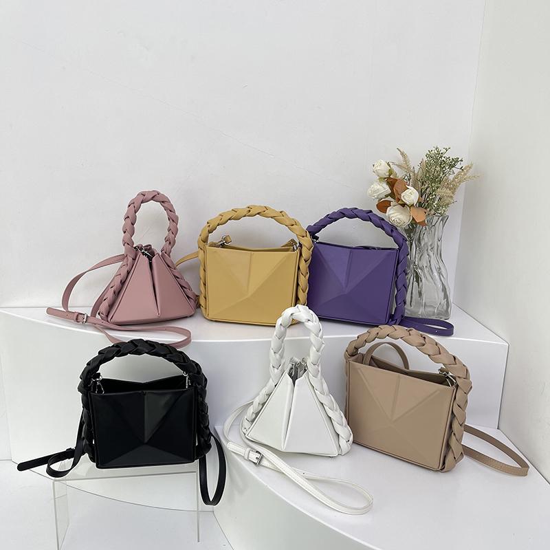Эксклюзивная квадратная сумка через плечо для женщин, монохромная, треугольная, из искусственной кожи, универсальный дизайн, новый стиль, мода, высокое качество