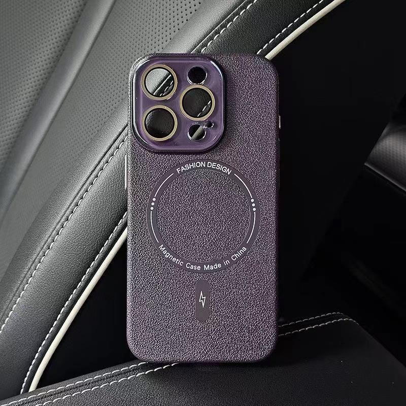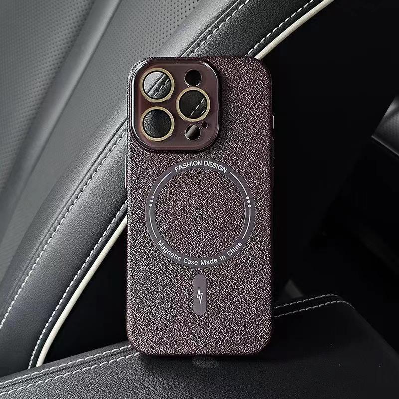 Узор из кожи личи, подходящий для чехла для мобильного телефона Apple 15 IPhone 14promax Магнитный 13 Кристальная линза Полностью закрывающий Противоударный