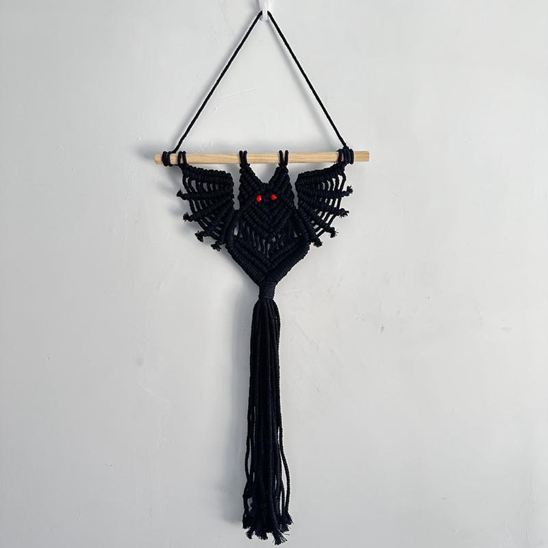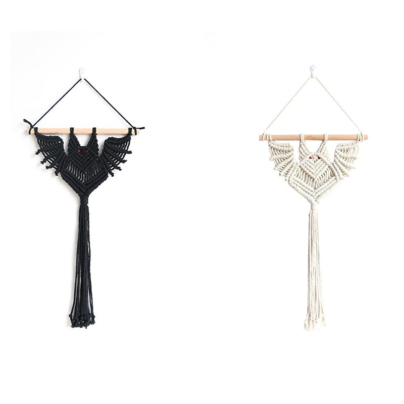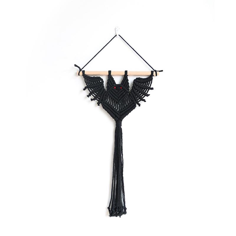 Хэллоуин Летучая мышь Макраме Настенное панно Геометрическое искусство Декор Ручная работа Плетеный Готический орнамент Для спальни Черный Прочный Легкая установка