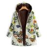 Винтажная куртка с капюшоном большого размера с цветочным принтом для женщин, с длинным рукавом, толстая плюшевая на молнии, комбинированное пальто