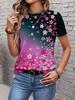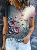 Женская футболка Летняя Повседневная Круглый вырез Короткий рукав 3D принт Цветочный узор Топ Свободная Повседневная одежда Женская футболка