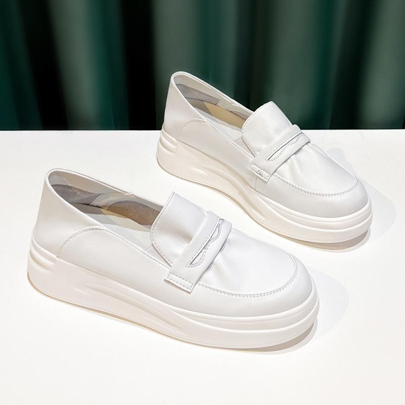 Женские новые однотонные туфли на толстой подошве, увеличивающие рост, универсальные кожаные спортивные и досуговые кеды