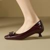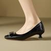 Женские туфли из овчины, новые, с квадратным носком и бантом, для работы, на низком каблуке, женские туфли на толстом каблуке из лакированной кожи, туфли на высоком каблуке