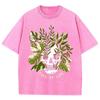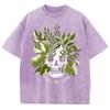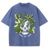 Парные футболки Свободные Оверсайз Футболки из вареного денима Принт с черепом и ботаническим мотивом Повседневный шик Унисекс Футболка с коротким рукавом Винтаж