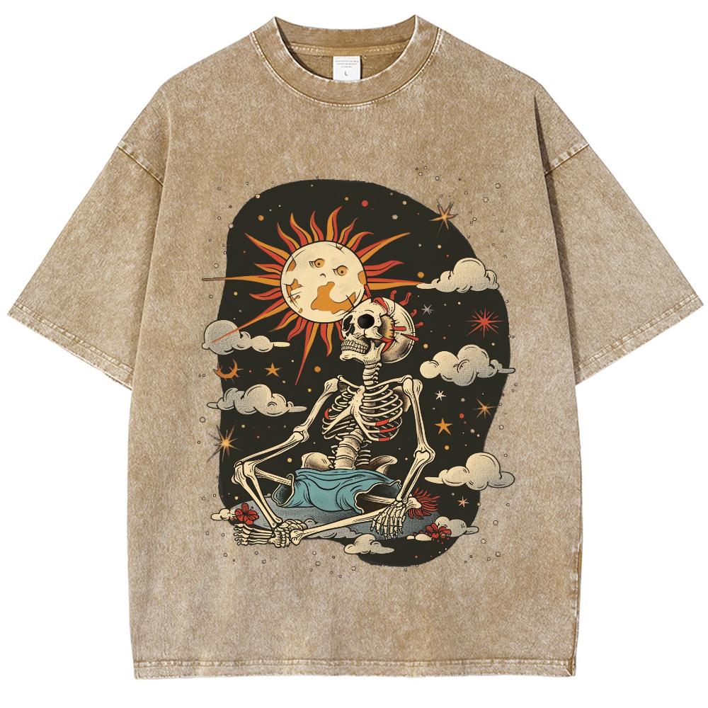 Мужские футболки с принтом в виде черепа и солнца в винтажном стиле, уличный хип-хоп, ретро, панк, готика, харадзюку, повседневные, хлопковые, с коротким рукавом