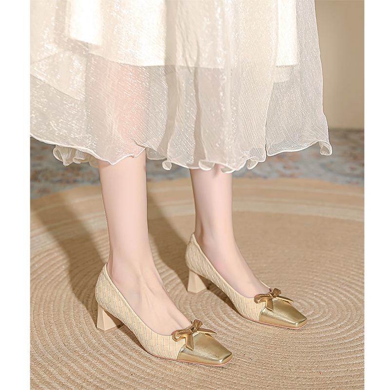 Туфли-лодочки женские средний каблук новая женская обувь ретро вставки квадратный носок высокий каблук толстый каблук