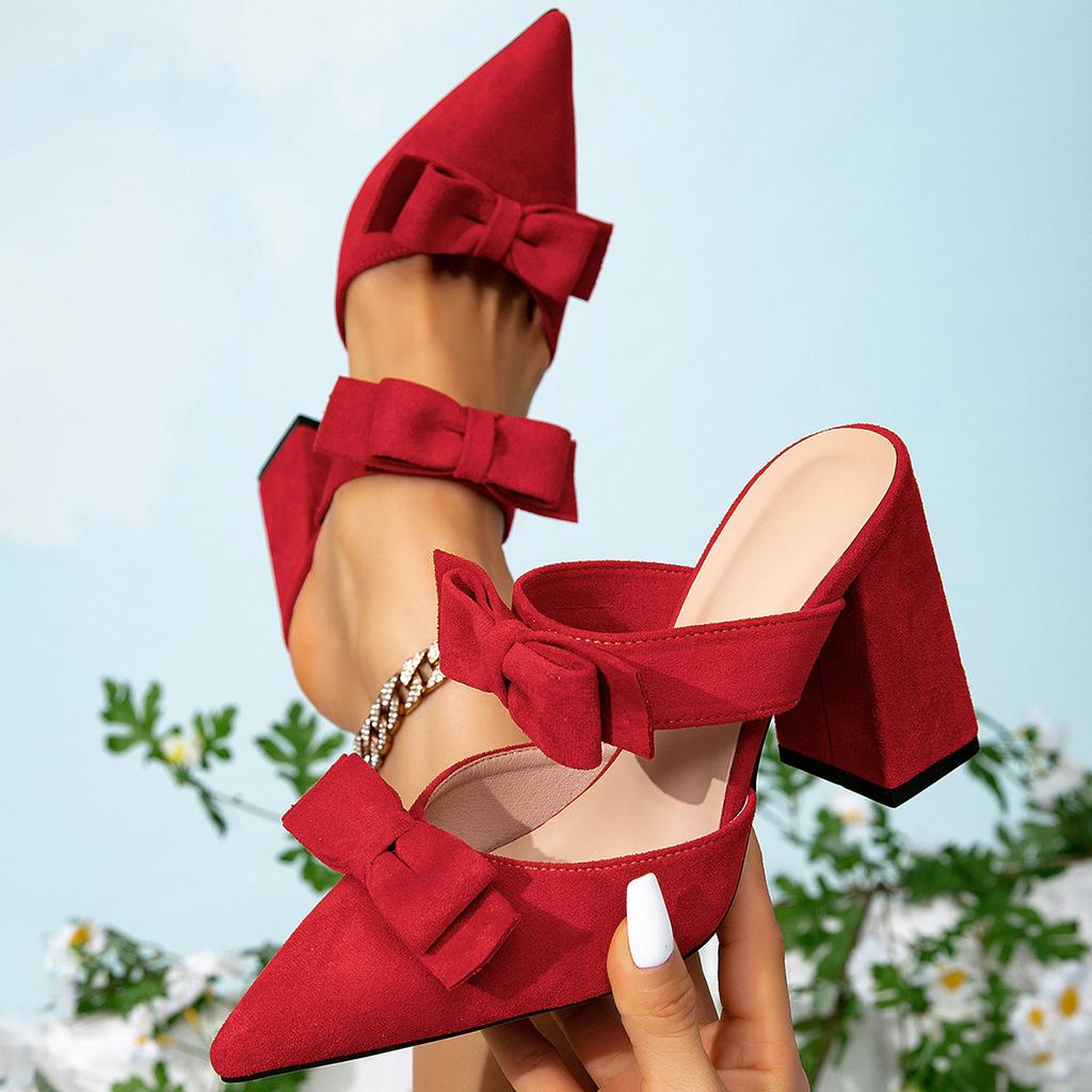 Женская обувь вечеринка вечеринка красные туфли на высоком каблуке сандалии толстый каблук высокий каблук мода острый носок пряжка простые туфли на высоком каблуке