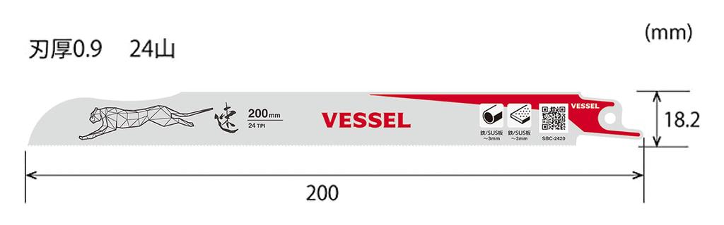 VESSEL Сабельное пильное полотно Cheetah для металла Железообработка 24 зуба Толщина полотна 0,9 мм Общая длина 200 мм Упаковка из 5 штук SBC-2420-5