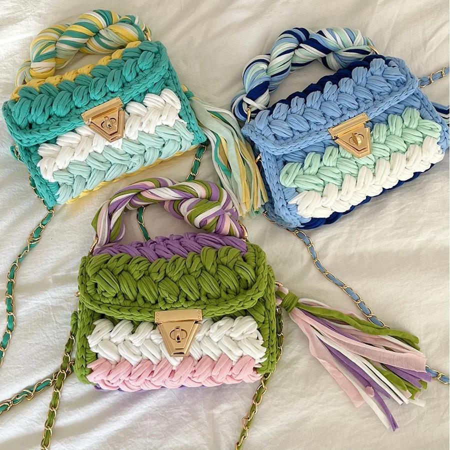 Модная шерстяная вязаная крючком сумка на плечо с кисточками из ткани сумки для женщин дизайнерская нить сумка через плечо fin