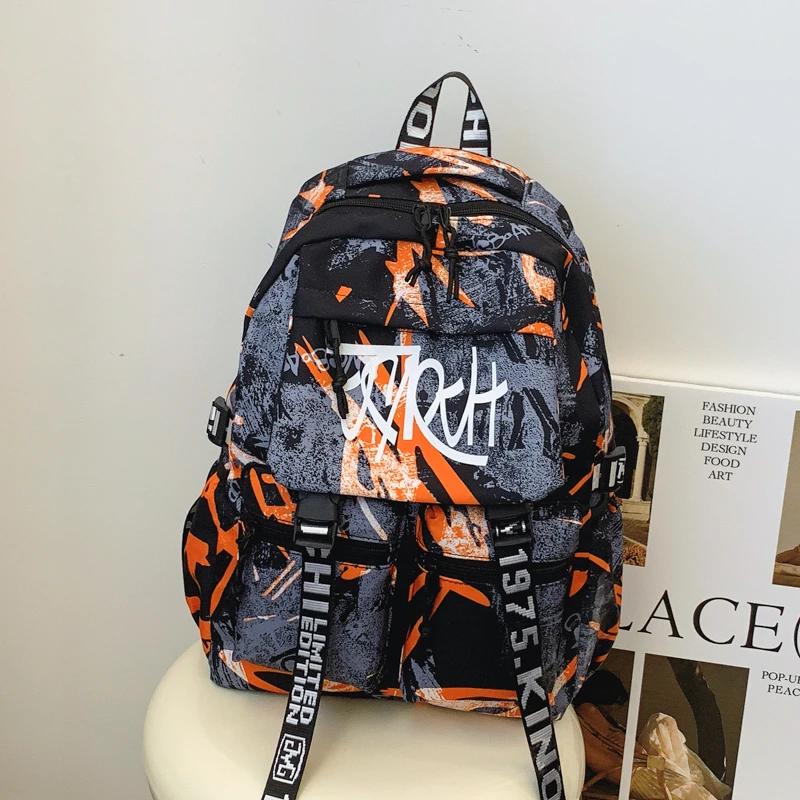 Большой вместительный мужской рюкзак с граффити, корейская версия, универсальная дорожная сумка, нейлоновая сумка — купить товар онлайн с бесплатной доставкой по всему миру!