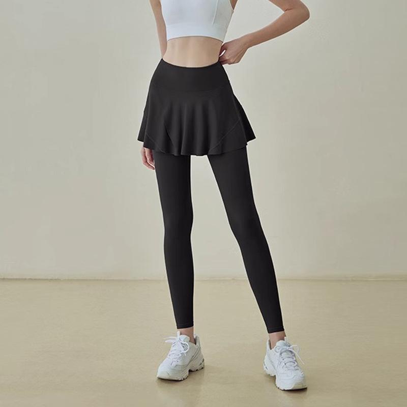 Большой размер Толстый Мм Юбка и брюки для йоги для женщин С высокой талией Беговые фитнес-брюки Спортивная одежда Брюки Задние шторки Носить Поддельные брюки-юбку из двух частей
