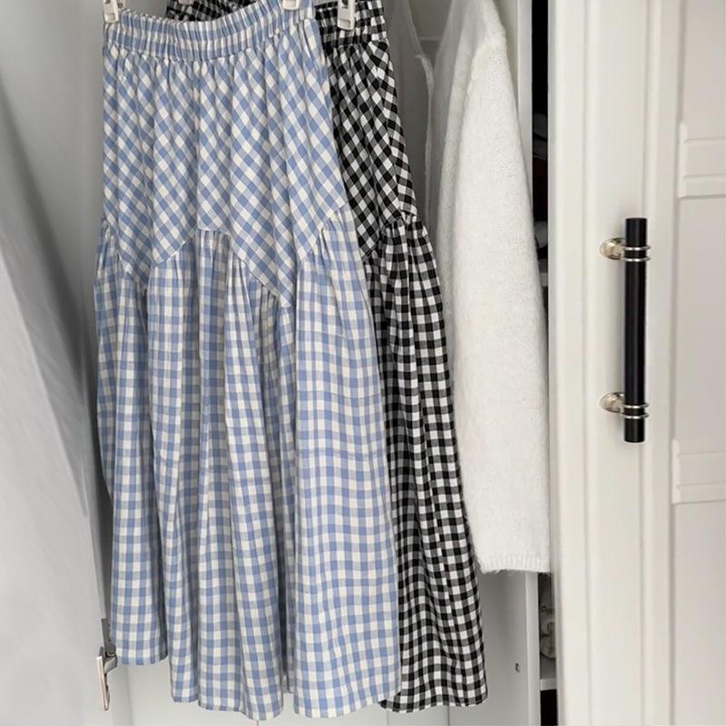 Дофаминовая синяя клетчатая юбка для женщин на весну и лето, новая миди-длины, с большим клешем, А-силуэта, облегающая, юбка-зонт — купить товар онлайн с бесплатной доставкой по всему миру!