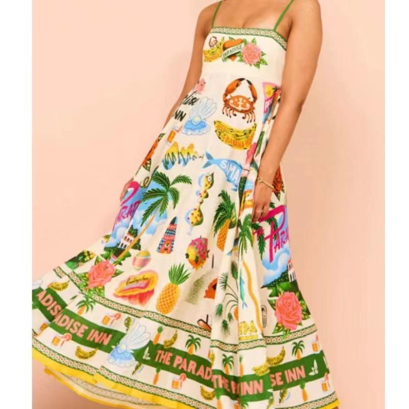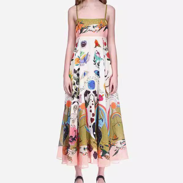Летнее женское новое темпераментное и элегантное платье на бретелях с принтом и высокой талией, повседневное и модное