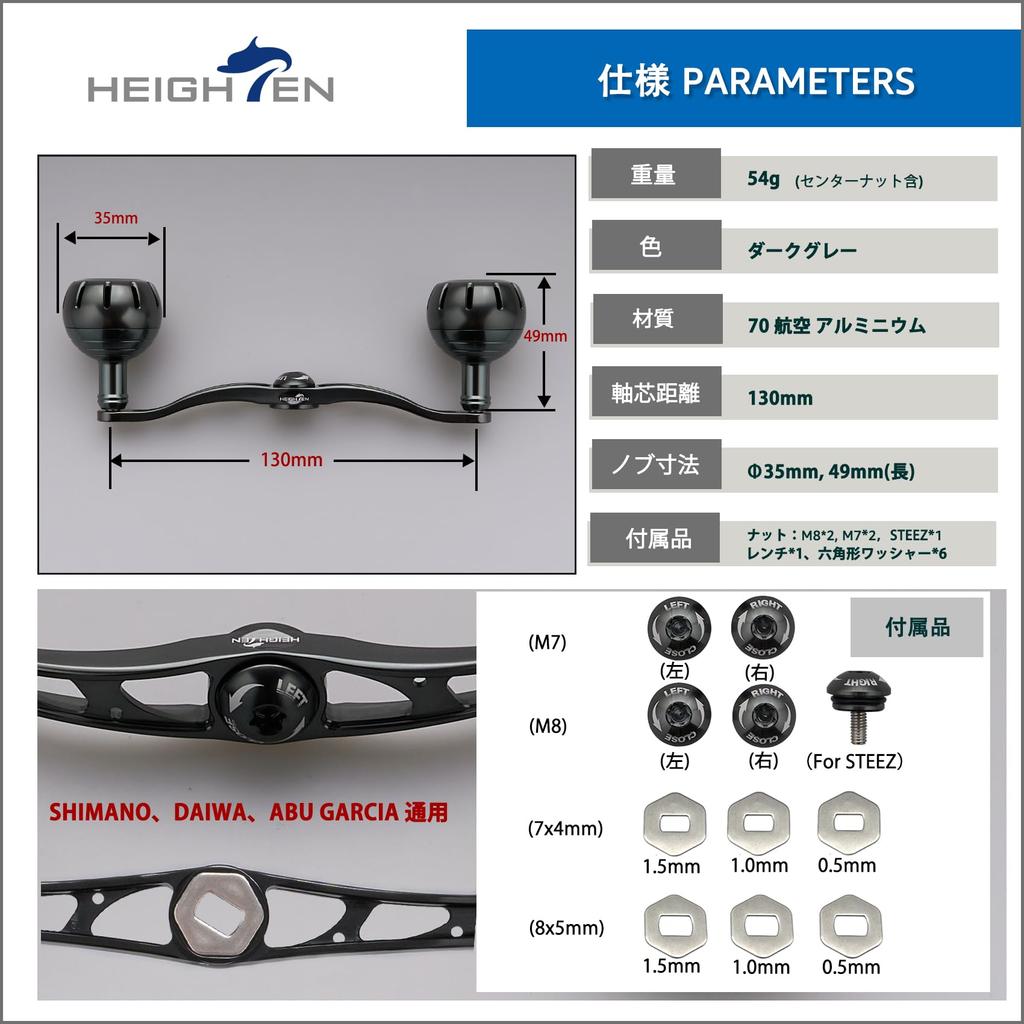 Рукоятка катушки HEIGHTEN 130 мм с ручкой 35 мм для универсальной безынерционной катушки Abu Garcia серии Chrysant серая Shimano, Daiwa, (Тьма (22СТЕЛЛА/23ЭЙРИТИ))