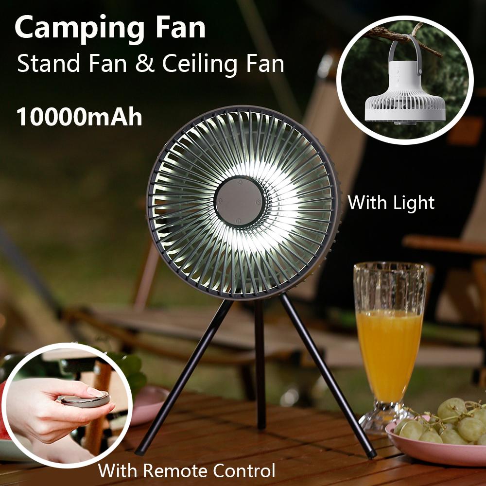 10000mAh Rechargeable Camping Fan with Night Light Nature Hike Usb Fan Remote Control Wireless Ceiling Fan Circulator Camping