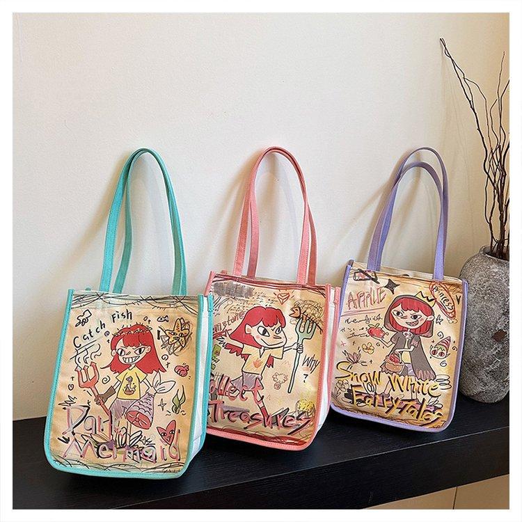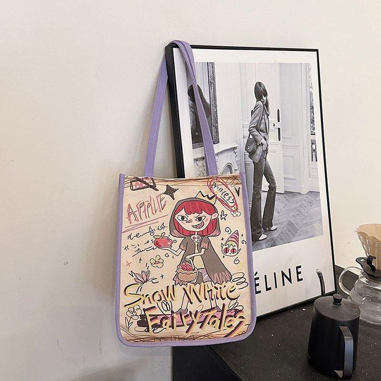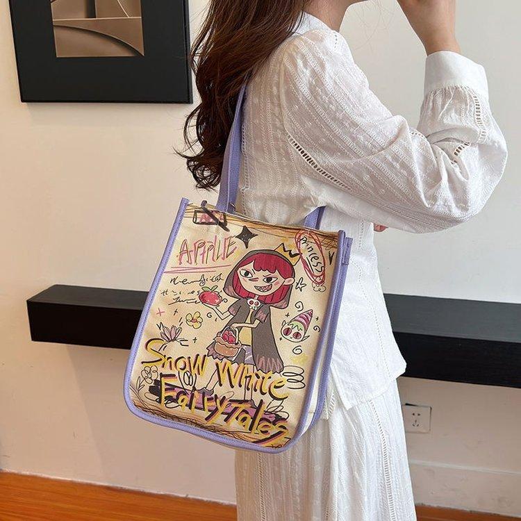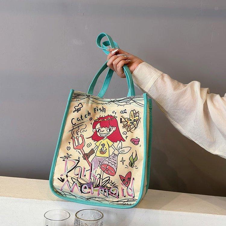Сумка-ведро для девочки, сумка-бенто на работу, наплечная сумка, холщовая сумка с детскими граффити, милая иллюстрация