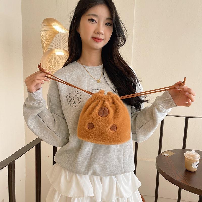 Плюшевая портативная женская сумка на плечо, сумка-кукла, большая вместимость, мультяшная уродливая плюшевая сумка-ведро на шнурке