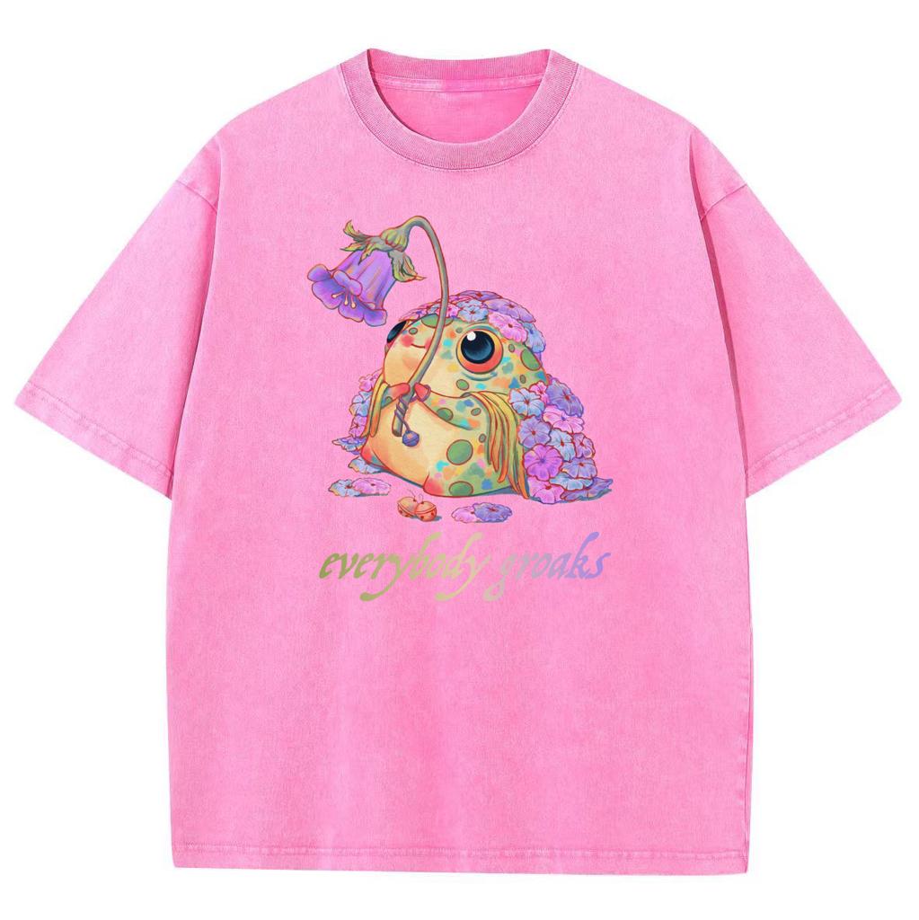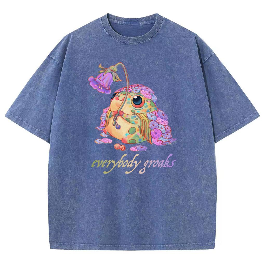 Красочная футболка женская с принтом горячего тиснения лягушки, из выстиранного денима, оверсайз, парная, с коротким рукавом, унисекс, футболки высокого качества, милая
