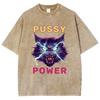 Женская футболка с принтом Power Cat, оверсайз, тренд Y2K, хип-хоп, ретро, с коротким рукавом, повседневный топ в стиле харадзюку, лето