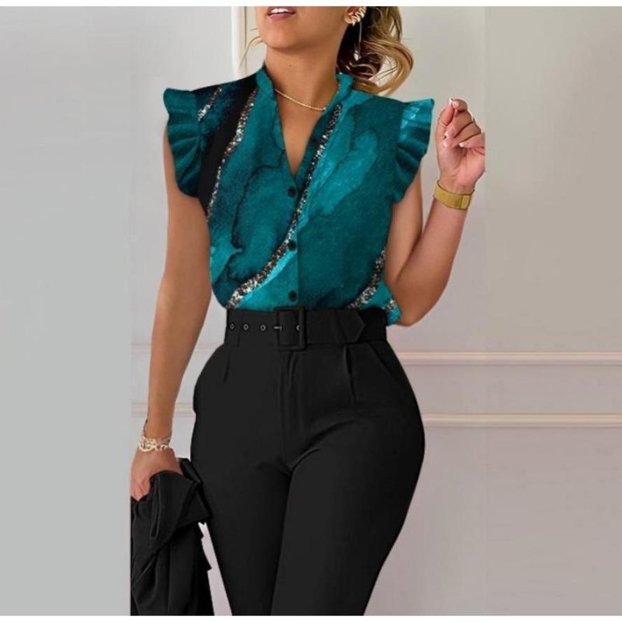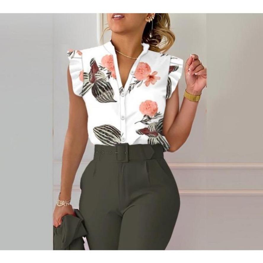 YYFS Женские модные повседневные летние весенние блузки и рубашки с цветочным узором и коротким рукавом с v-образным вырезом