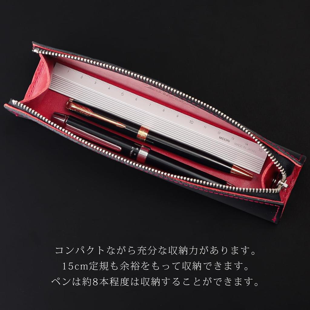 Пенал для настоящего карандаша Точиги Сделано в Японии x Темный [Эль Дьябло] Мужской, Кожаный, Кордован, Кожаный, Чехол, [EL-C3147] (Черный Красный)
