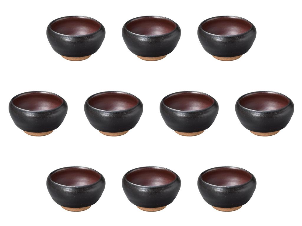 Набор из 10 черных глазурованных красных круглых деликатесов x Деликатесы Керамический набор Сетомонохонпо [7.1 3.8 см] (Фаянсовая посуда)