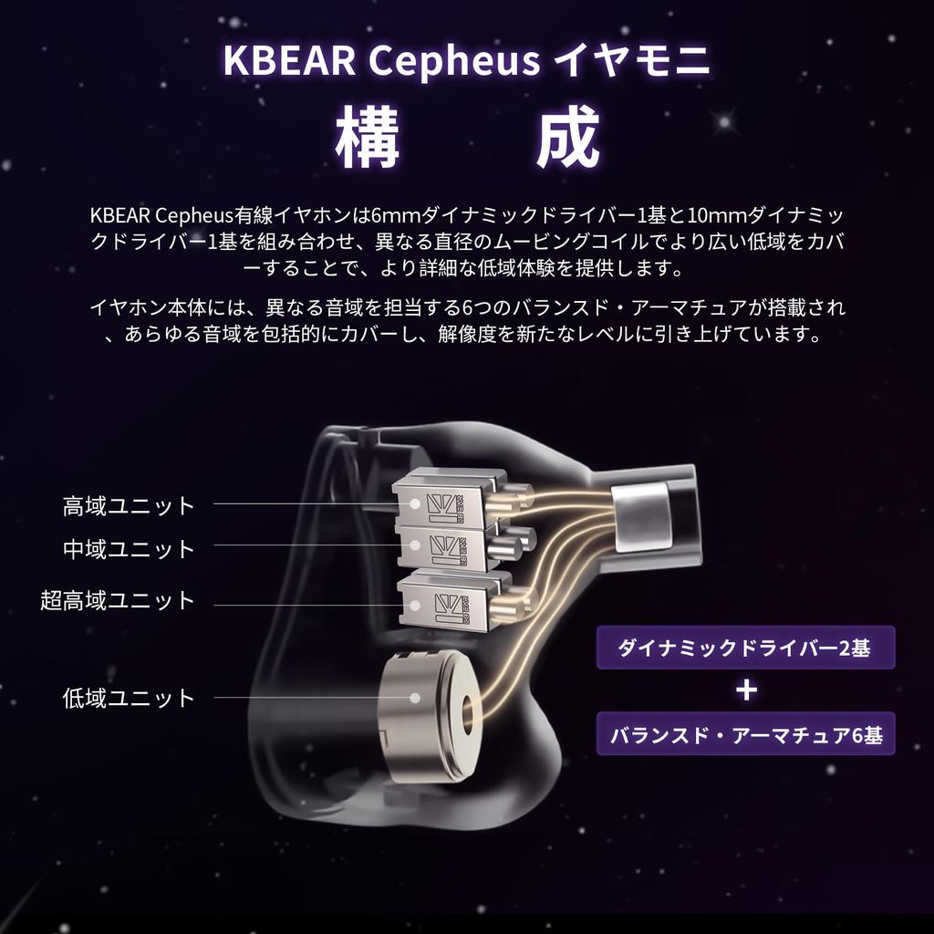 [Концепция дизайна Цефея] В китайской мифологии «бессмертный король» является символом высшей власти и мудрости. Околополярное созвездие Цефей, сияющее в северном небе, представляет легендарного царя Эфиопии и воплощает достоинство благородного короля.. Вдохновленные достоинством бессмертного трона, проводные наушники KBEAR KB16 были разработаны, чтобы стать «троном» акустического мира.. Мы приглашаем вас в царство высшего звука.